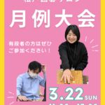 - 有段者の方の「月例大会」|3月22日(日)今月も月例大会を開催します!予約不要ですので、奮ってご参加いただければと思います。 開催概要 日時:3月22日(日)11:00~17時(4局)参加費:1,700円(席料込み)★成績上位の方に賞品あり★予約は不要です※昼食 […]