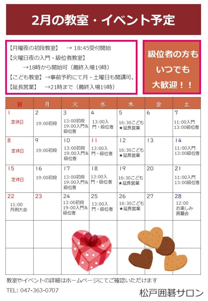2月のスケジュールです!今月もよろしくお願いいたします。