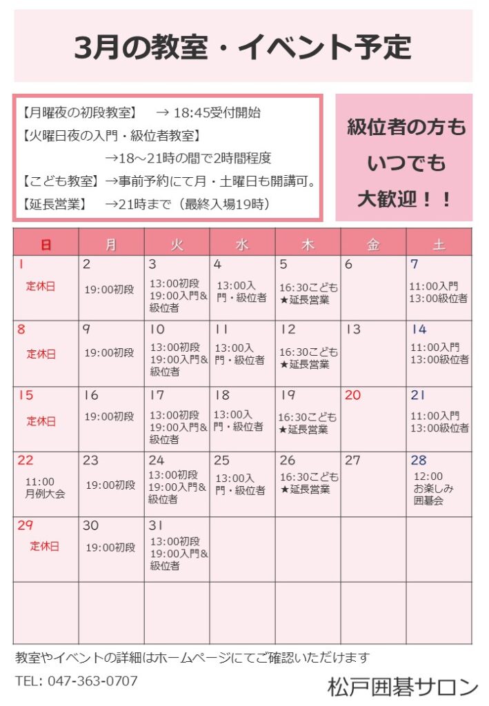 3月のスケジュール